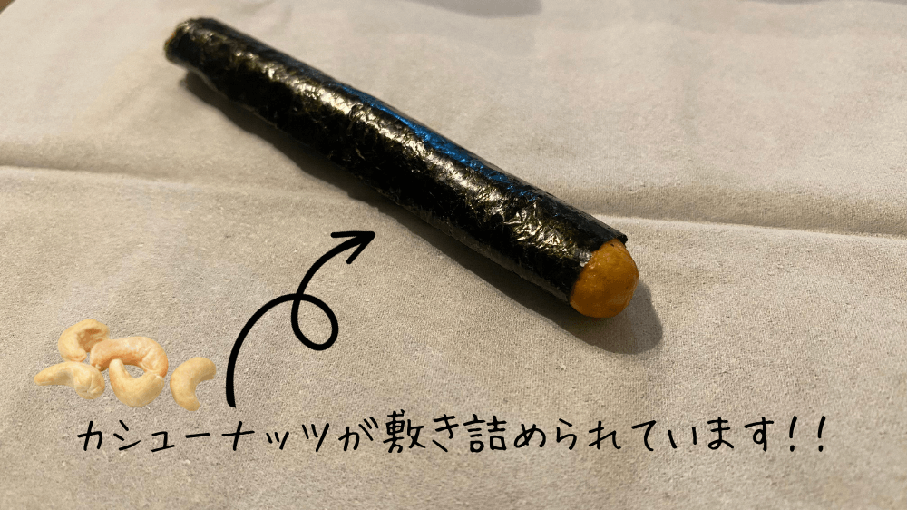 味も数種類あって、これはカシューナッツが敷き詰められているものでした!